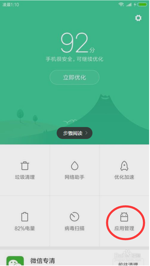 3、打开安全中心之后会看到一个应用管理,我们接着打开应用管理。