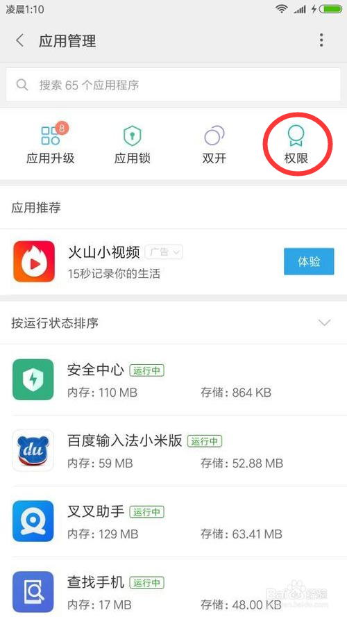 4、在应用管理的页面我们可以看到一个权限的字样,我们点击权限。