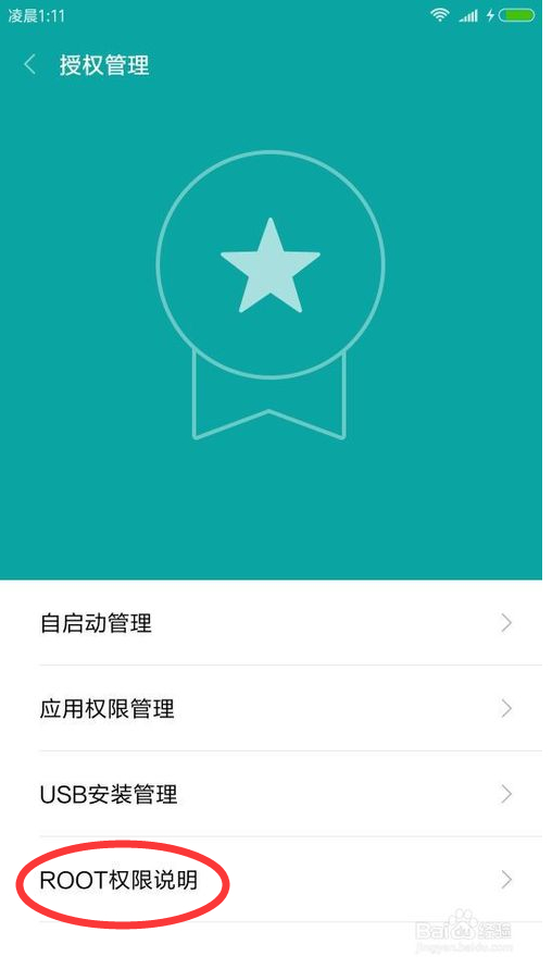 5、来到授权管理的页面之后,我们可以看到如果你的手机是9.0之前的系统或者版本的话,那么root权限说明就会变成root的字样。点击root权限说明